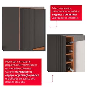 O Armário de Cozinha Ágata agrega charme e sofisticação ao ambiente, com amplo espaço e gavetas com corrediças telescópicas de abertura total, permitindo armazenar utensílios e organizar seu espaço com praticidade.