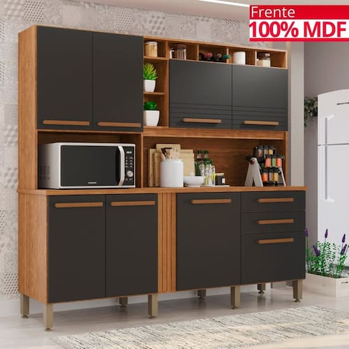 Cozinha 8 Portas 2 Gavetas Aurora Cinamomo/Grafite