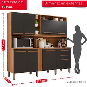 Cozinha 8 Portas 2 Gavetas Aurora - Tudo de Móveis Preparar receitas especiais para a família e os amigos fica ainda melhor quando o espaço está organizado e tudo está em seu devido lugar, não é? O Armário Aurora é perfeito para quem busca requinte e sofisticação para completar a cozinha. Espaçoso e moderno, ele é o diferencial ideal para trazer mais organização e beleza ao ambiente, sem abrir mão da qualidade e praticidade para acomodar todos os seus utensílios. Com um amplo espaço interno e 8 portas, o Armário Aurora oferece a melhor maneira de guardar tudo o que você precisa na cozinha. Aproveite e adquira o seu agora mesmo! O Armário de Cozinha Aurora agrega charme e sofisticação ao seu ambiente, com espaço generoso e gavetas para acomodar todos os seus utensílios, proporcionando uma excelente organização. Especificações: Peso do produto: 96,00 kg Altura: 200 cm Largura: 210 cm Profundidade: 46 cm Material da estrutura: MDP e MDF Frente do Armário 100% MDF / Corpo em MDP Pés quadrados e com regulagem Tampo 20mm Corrediças Telescópicas Costas fechada Estrutura e Laterais 15mm Necessita Montagem: SIM   Informações importantes: A Loja Tudo de Móveis não e responsável pela montagem do móvel, todos os produtos acompanham manual de montagem, a montagem é de exclusiva responsabilidade do adquirente. É imprescindível a contratação de um montador profissional para montar o produto. Não nos responsabilizamos por danos de qualquer natureza causados no produto pela montagem. Produtos podem apresentar diferenças de tonalidades entre a foto na tela e o produto real, devido a calibração de cor da tela. Os objetos decorativos que ambientam as fotos não são vendidos e não acompanham o produto. Favor confira se todos os volumes que constam na nota, foram descarregados. E verifique se as embalagens estão em boas condições no momento da entrega. A Loja Tudo de Móveis e o serviço de transporte não se responsabilizam por produtos que precisem subir escadas, ou serem içados para algum andar superior e não realizam tais serviços, ou seja, é de responsabilidade do cliente. Verifique as dimensões do produto antes de finalizar a compra