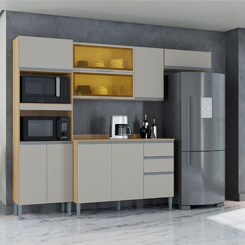 Chegou para inovar sua cozinha e proporcionar um toque especial, a Cozinha Aline composta por: Paneleiro para micro-ondas e forno, Aéreo basculante, Aéreo de Geladeira e Balcão com tampo desenvolvida pela Poquema com materiais de ótimas qualidades, maior durabilidade do móvel, conta com amplo espaço interno para melhor organizar seus utensílios, lindo design na cor Damasco Off White proporcionando modernidade ao ambiente. Não deixe de aproveitar, garanta o seu!