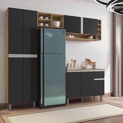 A sua cozinha ideal você encontra aqui na nossa loja! Apresentamos a você essa linda opção desenvolvida pela AJL com materiais de alta qualidade para maior resistência e durabilidade do móvel, Cozinha completa da linha Vanessa traz um lindo e moderno design proporcionando um toque especial ao ambiente, conta com Paneleiro 4 Portas, Aéreo Geladeira com prateleiras expostas, Aéreo 2 Portas com espaço nicho para diversas opções de utilidade e Balcão 3 portas e 1 Gaveta, possui um amplo espaço interno com excelentes divisões que irão lhe auxiliar no seu dia a dia, maior organização e praticidade para você. Não deixe essa oportunidade passar, garanta já a sua!