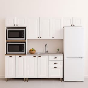 A Cozinha Americana Amoudi é a escolha ideal para quem busca praticidade e estilo. Fabricada em MDP de alta qualidade e na cor branca, ela traz um design moderno que se adapta facilmente a diversos ambientes, garantindo resistência, fácil limpeza e ótimo aproveitamento do espaço.
