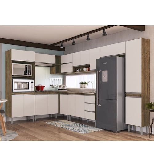 1x Balcao para Cozinha Canto Reto Athena Itauba/ Off White Largura: 98,5 cm Altura: 86 cm Peso: 31 kg Profundidade: 54 cm Necessita Montagem: Sim