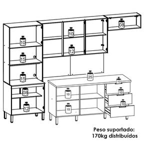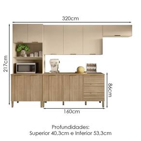 Cozinha e Balcão com tampo, design moderno que se adapta ao seu espaço! Produzida em MDP (12/15mm) com acabamento em pintura UV. Conta com 10 portas (01 basculante), 03 gavetas, dobradiças e corrediças metálicas, 02 nichos para microondas/forno, passa fio embutido e prateleiras internas. Os puxadores ergonômicos e pés reguláveis são em plástico resistente. Este produto será entregue em 07 volumes.
