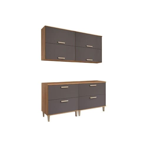 Balcão de Cozinha c/ Tampo Bella c/ 1 Porta Basculante e 1 Gaveta 80 cm Freijo/Titanium - MGM
