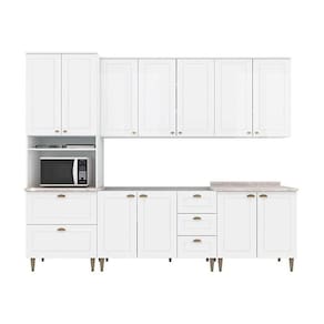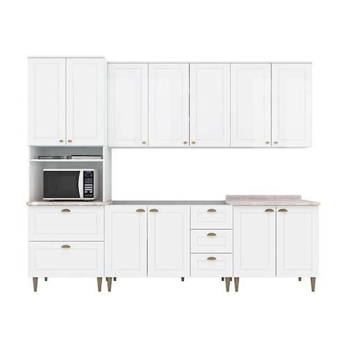 Cozinha Completa Americana c/ Pés 6 Peças (2 Armários + 1 Paneleiro + 2 Balcões + 1 Complemento) C5P62 Branco - Henn