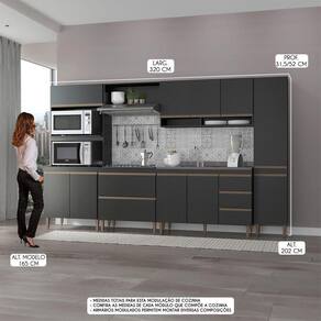 Cozinha Com Balcão Cooktop Modulada 6 Pçs Menu Móveis Preto A Cozinha Modulada Sabrina foi desenvolvida para atender todas as suas necessidades do dia a dia com um design moderno, cheio de atitude, personalidade, funcionalidade, beleza e versatilidade. A Cozinha preta e a tendencia do momento e foi arquitetada com modulos uteis que vao facilitar a sua rotina diaria nos preparos e armazenamento dos utensilios, mantendo sua cozinha sempre organizada.