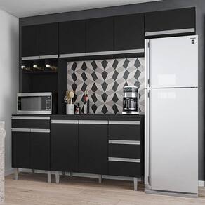 Sua cozinha ideal está aqui, pensando em você que não tem muito espaço e procura por cozinha compacta apresentamos essa linda opção, a Cozinha da linha Andréia desenvolvida com todo carinho pela AJL com excelentes materiais de qualidades para maior durabilidade do móvel, composta por Armário Aéreo Geladeira, Armário Aéreo 3 Portas, Paneleiro Duplo e Balcão com Tampo 120cm com lindo design na cor Preto Fosco proporcionando modernidade e um toque especial em sua cozinha, possui amplo espaço interno para melhor organizar seus utensílios, praticidade, conforto e segurança acompanham seu dia a dia. Não deixe de aproveitar, garanta a sua!