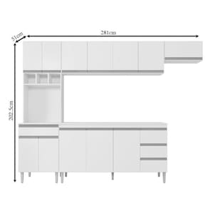 Cozinha com Balcão e Tampo 160 cm Andréia Branco Brilho - AJL
