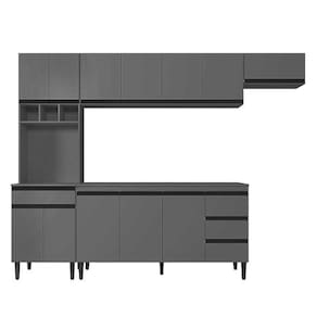 Cozinha com Balcão e Tampo 160 cm Andréia Cinza Fosco - AJL