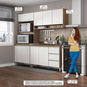 Cozinha Com Bancada Ilha Sabrina 200x202cm Mdp Menu Móveis Branco A Cozinha Sabrina Modulada foi desenvolvida para atender todas as suas necessidades do dia a dia com um design moderno, funcionalidade e versatilidade. A Cozinha Modulada e a tendencia do momento e foi arquitetada com modulos uteis que vao facilitar a sua rotina diaria, preparos dos alimentos e armazenamento dos utensilios e mantimentos, mantendo sua cozinha sempre organizada. Por se tratar de armarios de cozinha modulados voce pode ajustar os modulos conforme o espaco disponivel e montar diversas modulacoes diferentes para deixar o ambiente muito mais aconchegante. A elegancia fica por conta dos puxadores em perfil e os pes dando um toque unico de sofisticacao. A Cozinha Sabrina e produzida com materiais de excelente qualidade, garantindo a durabilidade e vida util. O melhor em moveis no design atual aliando conforto, qualidade e otimos precos! Caracteristicas: Produzida em MDP de 15 mm Acabamento UV Portas com Dobradica Metalica Porta Basculante com Pistao a Gas Gavetas com Corredica Telescopica Puxadores Perfil em ABS Pes com Regulagem em ABS NAO acompanha TAMPO e PIA