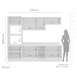 Medida de cada item (A x L x P): Balcão: 81x120x50,5; Aéreo 66x120x30,5; Basculante 36x80x30,5; Torre Quente 224,5x70x52