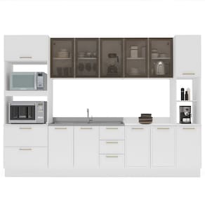 A Cozinha Amara é a escolha perfeita para quem busca elegância, funcionalidade e excelente aproveitamento de espaço. Com 224,5 cm de altura, 52 cm de profundidade e 310 cm de largura, ela oferece um conjunto completo com torre quente com nicho para micro-ondas, paneleiro espaçoso, aéreo com vidro fumê e balcão para pia, garantindo praticidade no dia a dia. Seu acabamento em pintura proporciona um visual moderno e maior durabilidade, enquanto os puxadores de metal trazem resistência e sofisticação. Além disso, conta com rodapé, que valoriza o design e facilita a limpeza, tornando a cozinha mais organizada e elegante. O balcão da pia é entregue sem tampo, permitindo que você escolha o material e o estilo que mais combinam com seu ambiente.