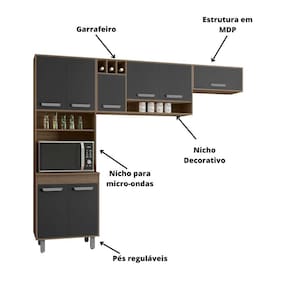 Cozinha Compacta (03 Peças) Barcelona - Ssx Multicoisas Carvalho/grafite