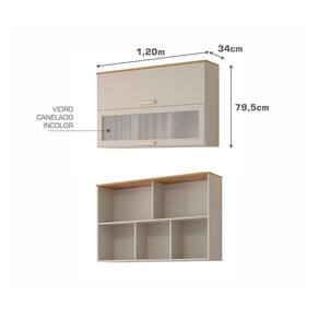 ARMÁRIO AÉREO DE COZINHA 100%MDF 120CM 2 PORTAS BASCULANTES 1 EM VIDRO BELLA MGM MÓVEIS FREIJÓ/OFF W