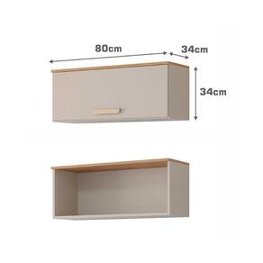 ARMÁRIO AÉREO DE COZINHA 100%MDF 80CM GELADEIRA 1 PORTA BASCULANTE BELLA MGM MÓVEIS FREIJÓ/OFF WHITE