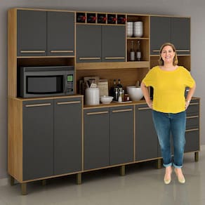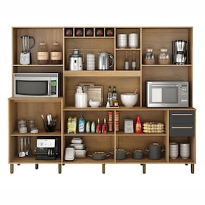 Espaço para organizar tudo o que você precisa e um design pensado para deixar o seu cômodo de chef mais bonito: essas vantagens você só encontra no Armário Ágata! Unindo compartimentos internos essenciais, ela recebe bem os utensílios, panelas, louças e embalagens de alimentos, além de acomodar também aqueles eletrodomésticos indispensáveis para um dia a dia mais prático. Enquanto isso, por fora, a estrutura tradicional, que se encaixa muito bem no ambiente, carrega uma coloração sóbria que é reforçada pelos puxadores discretos, perfeitos para quem quer acrescentar charme à decoração sem deixar de lado a elegância de uma peça versátil. Daí é só comprar os móveis e acessórios que vão complementar essa parte importante da casa e pronto! Já pode curtir ótimas refeições com a família-