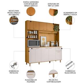 Cozinha Compacta 180cm Martina Freijó/Ripado/Off Acetinado Z44 - Mpozenato