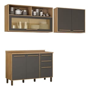 1x Balcão 120cm 3 Portas 2 Gavetas Salvador Cinamomo/Grafite Largura: 120 cm Altura: 95 cm Peso: 39,5 kg Profundidade: 53 cm Necessita Montagem: Sim