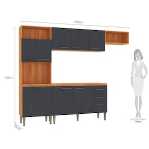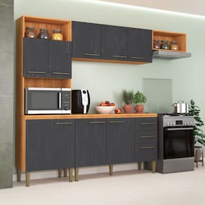 A Fellicci Móveis orgulhosamente apresenta com exclusividade para você a Nova Cozinha Malu, composta por 9 portas e 02 gavetas. Produzido com MDP 12cm com portas 15cm de excelente qualidade, possui dobradiças e corrediças metálicas. O acabamento é Pintura UV de última geração, o que garante acabamento impecável e alta durabilidade. A cor do móvel é super moderna e elegante, combinando perfeitamente com pés e puxadores na cor bronze. Os pés de 17cm de altura possuem regulagem de altura. Possui um ótimo aproveitamento de espaço interno e externamente conta com nichos superiores para colocação de utilidades e itens decorativos. O paneleiro possui espaço de 57,6 x 50,0 x 38,5cm para forno. Leve para sua casa esse excelente produto e tenha garantia de satisfação! Acabamento da Prateleira: Pintura UV Escala de Brilho da Prateleira: Semi-Brilho Acabamento da Gaveta: Pintura UV Escala de Brilho da Gaveta: Semi-Brilho Material do Puxador da Gaveta: Plástico Acabamento da Porta: Pintura UV Escala de Brilho da Porta: Semi-Brilho Acabamento dos Pés: Polipropileno Acompanha Tampo: Sim Altura dos Pés: 17 cm Altura Máxima dos Pés: 17.0000 Ambiente Principal: Cozinha Balcão Suporta Pia: Não codigo_ean: 7900288164582 Complexidade da Montagem: Baixa: pode ser montado por uma pessoa sozinha Cor: Cinamomo/Grafite Cor do Produto: Cinamomo/Grafite Cor Interna: Cinamomo Escala de Brilho: Semi-Brilho Espessura do Material da Estrutura: 3 mm Gaveta com Chave: Não Itens Inclusos: 1 Cozinha Compacta, Kit Ferragens e Manual de Montagem Linha ou Coleção: Malu Manual de Montagem e Instalação: https://product-hub-prd.madeiramadeira.com.br/281978579/documents/d2966ea2-129b-445b-a71b-d4c0336e6e432961997406517485253130579.pdf Marca: Fellicci Material da Corrediça: Metálica Material da Dobradiça/Corrediça da Porta: Metálica Material da Gaveta: MDP Material da Porta: MDP Material da Prateleira: MDP Material do Fundo: MDP Material do Tampo: MDP Material dos Pés: Polipropileno Medida de cada item (A x L x P): Balcão BP27 = 79x120x39, Cozinha CL15 = 198x240x39 modular: Não Necessita Montagem: Sim O Balcão Acompanha Pia: Não Origem do Produto: Nacional Pés Reguláveis: Sim Peso: 67,2 kg Peso Máximo por Gaveta: 2 kg Peso Máximo por Prateleira: 3 kg Possui Pés: 09 Possui Portas: Sim Possui Prateleiras: Sim Possui recorte para Cooktop: Não Possui Rodízio: Não Possui Vidro: Não Produto Montado: Sim Recomendações de Uso, Manutenção e Limpeza: Pano levemente umedecido com água Sapatas Niveladoras: Não Sistema de Montagem: Parafusos Tamanho Indicado da Pia: Não se aplica Tipo de Corrediça da Gaveta: Metálica Simples Tipo de Dobradiça da Porta: Simples Tipo de Puxador da Gaveta: Externo Tipo de Puxador da Porta: Externo