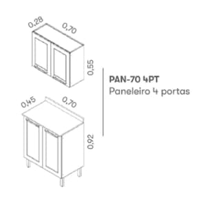 A linha Frorença tem o design das portas diferenciado, com linhas curvas modernas. O puxador grande em ABS com acabamento metalizado ônix interage com o estampo da porta, proporcionando robustez ao produto, é produzido com material de qualidade, visando durabilidade e resistência. Possui 4 portas e pés com regulagem de altura, é imponente e sofisticada. Modernidade e beleza. Você organiza os utensílios domésticos, sem abrir mão de qualidade e bom gosto! *** Detalhe importante em relação a altura total, pelo fato de serem montados de forma individal a altura é flexivel conforme a necessidade do consumidor, outro ponto importante é a profundidade, na parte superior ele tem 28cm e na parte inferior 45cm. Acabamento da Prateleira: Pintura Escala de Brilho da Prateleira: Semi-Brilho Acabamento da Gaveta: Escala de Brilho da Gaveta: Material do Puxador da Gaveta: Acabamento da Porta: Pintura Escala de Brilho da Porta: Semi-Brilho Material do Puxador da Porta: ABS Acabamento dos Pés: Acompanha Tampo: Sim Altura dos Pés: 16 Ambiente Principal: Cozinha Complexidade da Montagem: Média: pode ser montado por mais de uma pessoa e/ou necessite de maior conhecimento para montagem Cor: Branco Cor do Produto: Branco Cor Flex: Cor Interna: Branco Escala de Brilho: Semi-Brilho Gaveta com Chave: Informações Complementares: Itens Inclusos: 1 Balcão, 1 Armário Aéreo, e Manual de montagem Linha ou Coleção: Florença Manual de Especificação Técnica: Manual de Montagem e Instalação: https://cdn2.madeiramadeira.com.br/atributo/itatiaia-aco/1204938-arm-70-balc-70.pdf Material da Gaveta: Material da Porta: Aço Material da Prateleira: Aço Material do Fundo: Aço Material do Tampo: MDP Material dos Pés: Polipropileno Medida de cada item (A x L x P): Armário Aéreo: 55x70x28cm; Balcão: 92x70x45cm Medida do Recorte para Cooktop: Montagem Flex: Necessita Montagem: Sim O Balcão Acompanha Pia: Não Origem do Produto: Nacional Pés Reguláveis: Sim Peso: 23 Peso Máximo por Gaveta: Peso Máximo por Prateleira: 10 Possui Pés: 04 Possui Portas: 04 Possui Prateleiras: 02 Possui recorte para Cooktop: Não Possui Rodízio: Não Recomendações de Uso, Manutenção e Limpeza: Pano Umedecido Resistente à Chuva: Rodízio com Trava: Sapatas Niveladoras: Sim Sistema de Montagem: Parafusos Suporta Até (kg): 70 Tamanho Indicado do Tampo ou Pia: Tipo de Corrediça da Gaveta: Tipo de Dobradiça da Porta: Simples Tipo de Madeira Maciça: Tipo de Madeira Maciça da Gaveta: Tipo de Madeira Maciça da Porta: Tipo de Madeira Maciça da Prateleira: Tipo de Madeira Maciça do Puxador da Gaveta: Tipo de Madeira Maciça do Puxador da Porta: Tipo de Madeira Maciça dos Pés: Tipo de Puxador da Gaveta: Tipo de Puxador da Porta: Externo