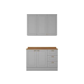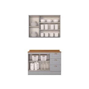 Composicao do Kit (AxLxP): 1 Aereo 03 Portas 83 x 120 x 32,5 Cm; 1 Balcao Pia 02 Portas e 03 Gavetas 82 x 120 x 51 Cm; 1 Tampo 2,5 x 120 x 53,5 Cm;