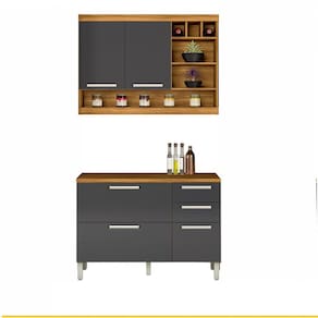 Cozinha Compacta 2 Peças Burguesa Premium Amadeirado Freijó/Grafite - Marrom