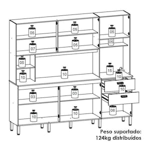 Perfeita para otimizar ambientes com praticidade e estilo, a Cozinha Compacta é produzida em MDP de 12mm e 15mm. Possui 10 portas e 02 gavetas, equipadas com dobradiças e corrediças telescópicas 100% metálicas, além de prateleiras internas, nichos decorativos e espaço funcional para forno elétrico ou micro-ondas. Os pés reguláveis são fabricados em plástico resistente, e os puxadores em ABS com pintura inox. O acabamento em pintura UV (fosco ou semibrilho) completa o visual moderno do móvel. Este móvel chegará em sua casa separado em 03 volumes.