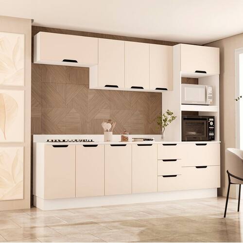 Características: Estrutura MDP Pintura FF/UV 07 Portas Articuladas com Dobradiças Metálicas 03 Portas Basculantes com Pistão à Gás 04 Gavetas com Corrediças Metálicas Puxadores de Plástico Possui Prateleiras com Amplo Espaço Possui Rodapé Peso Suportado nas Prateleiras Estruturais: 10kg Distribuídos Peso Suportado nas Prateleiras: 5kg Distribuídos Peso Suportado nas Gavetas: 3kg Distribuídos *ACOMPANHA TAMPO*