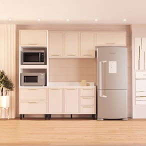 Características: Estrutura MDP Pintura FF/UV 05 Portas com dobradiças metálicas 03 Portas com pistão à gás 04 Gavetas com corrediças telescópicas Puxadores em Alumínio 09 Pés em Plástico Acabamento usinado Possui prateleiras com amplo espaço Peso suportado nas Prateleiras Estruturais: 10kg Peso suportado nas Prateleiras: 5kg Peso suportado nas Gavetas: 3kg *Acompanha Tampo*