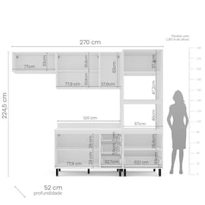 Dimensões do Balcão: Altura: 92,5 cm Largura: 120 cm Profundidade: 52 cm