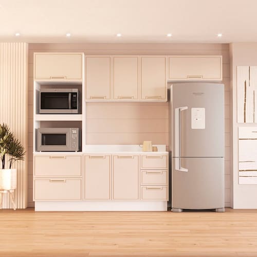 Cozinha Compacta 250094 4 Peças Amara Branco Creme Politorno Móveis - Branco | Bege