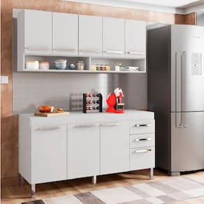 Armário aéreo com balcão para cozinha, ideal para quem busca modernidade e sofisticação ao ambiente. Estrutura 100% em MDP, feito com material ecológicamente correto, para melhor durabilidade e resistência à peça.