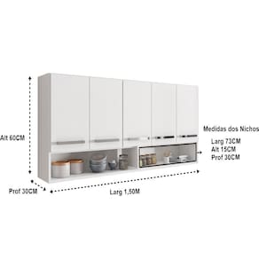O espaço interno é ideal para organizar objetos, utensílios e até mesmo mantimentos. A qualidade da matéria-prima fica por conta do MDP e do revestimento em pintura UV brilho, combinação que reforça a resistência e durabilidade da estrutura.