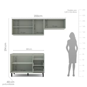 Dimensões: Altura: 214 cm Largura: 200 cm Profundidade: 49 cm