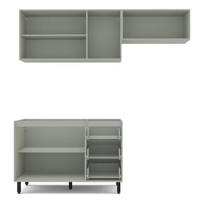 Características: Estrutura MDP Pintura UV 05 Portas com dobradiças metálicas 01 Porta com pistão à gás 03 Gavetas com corrediças telescópicas Puxadores de Plástico 05 pés em plástico Possui prateleiras com amplo espaço Peso suportado nas Prateleiras Estruturais: 10kg Peso suportado nas Prateleiras: 5kg Peso suportado nas Gavetas: 3kg *Não acompanha Tampo*