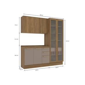 Garanta beleza e qualidade com o Conjunto CB905 da Cozinha Botanic da Kappesberg. Com três peças, em MDP de 1,5cm, são 2,22m de altura, 2m de largura e 52cm de profundidade, se adaptando a todos os espaços. Os módulos facilitam a organização, e com cristaleira com vidro, você terá um espaço único para suas louças. Para um acabamento perfeito, o conjunto acompanha tampo e rodapés, além das ferragens para ser montado suspenso. Com até sete camadas de pintura, a caixaria possui pintura touch na cor nogueira, com a textura dos veios da madeira, enquanto as frentes do balcão, na cor cinza, possui acabamento fosco. Os diferenciais são as dobradiças com amortecimento, as corrediças telescópicas e o LED no aéreo de pia. Os puxadores em alumínio na cor dourada, completam o diferencial.