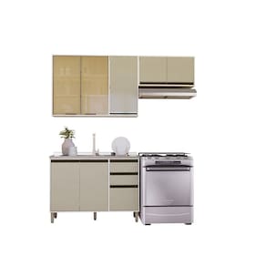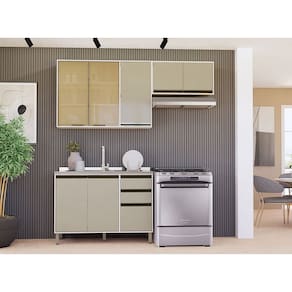 A Cozinha Linea foi desenvolvido aliando beleza e praticidade ao seu ambiente. As portas embutidas remetem ao planejado, ainda conta com acessorios requintados como dobradicas em 35mm com amortecimento Slowmotion, dobradica com amortecedor incorporado para fechamento suave de portas, puxadores tipo gola em perfil aluminio na cor Inox e pes em PS -poliestireno- na cor champagne. Possui gavetas com corredicas metalicas telescopicas em tres estagios, para abertura total. Perfeito para sua cozinha.