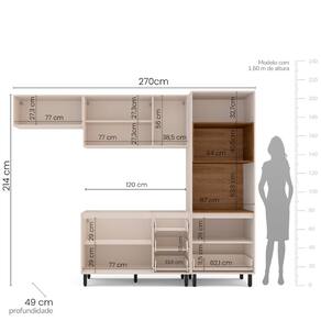 Dimensões: Altura: 214 cm Largura: 270 cm Profundidade: 49 cm