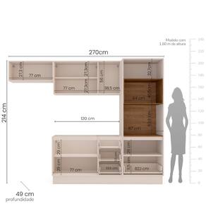 Dimensões: Altura: 214 cm Largura: 270 cm Profundidade: 49 cm