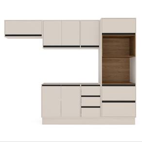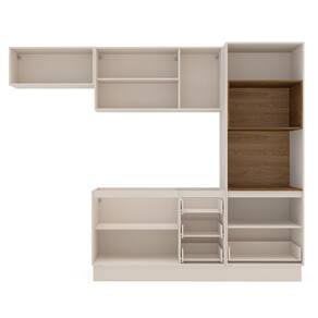 Características: Estrutura MDP Pintura UV 05 Portas com dobradiças metálicas 03 Portas com pistão à gás 04 Gavetas com corrediças telescópicas 02 Nichos para eletroportáteis Puxadores de Plástico Peso suportado nas Prateleiras Estruturais: 10kg Peso suportado nas Prateleiras: 5kg Peso suportado nas Gavetas: 3kg *Não acompanha Tampo*