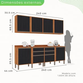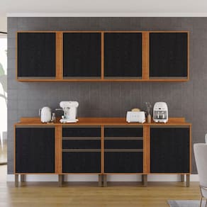 Você nunca imaginou que sua cozinha pudesse ficar tão organizada. Com a Cozinha Pérola, o espaço fica ainda mais convidativo e harmônico. E para maior praticidade em sua cozinha, o conjunto possui inúmeras características para facilitar o seu dia a dia, gavetas espaçosas para maior organização de seus utensílios e várias prateleiras internas. Tudo especialmente pensado para garantir toda a versatilidade que uma cozinha moderna precisa. Você não pode perder. Acabamento da Prateleira: Pintura UV Escala de Brilho da Prateleira: Fosco Acabamento da Gaveta: Pintura UV Escala de Brilho da Gaveta: Fosco Material do Puxador da Gaveta: MDF Acabamento da Porta: Pintura UV Escala de Brilho da Porta: Fosco Material do Puxador da Porta: MDF Acabamento dos Pés: Polipropileno Acompanha Tampo: Sim Altura dos Pés: 17 Altura Máxima dos Pés: 17.0000 Ambiente Principal: Cozinha codigo_ean: 7909903509296 Complexidade da Montagem: Média: pode ser montado por mais de uma pessoa e/ou necessite de maior conhecimento para montagem Cor: Cinamomo/Preto Cor do Produto: Cinamomo/Preto Escala de Brilho: Fosco Gaveta com Chave: Não Itens Inclusos: 1 Armário de Cozinha, Kit Ferragens e Manual de Montagem Linha ou Coleção: Pérola Manual de Montagem e Instalação: https://product-hub-prd.madeiramadeira.com.br/882963/documents/5bb2b056-608b-48c2-9e7f-c3e6089c30541699250manualperola04.pdf Material da Dobradiça/Corrediça da Porta: Aço Material da Gaveta: MDP Material da Porta: MDP Material da Prateleira: MDP Material do Tampo: MDP Material dos Pés: Polipropileno Medida de cada item (A x L x P): BALCÃO 2 PORTAS 85,5cmX120cm X44cm; ARMÁRIO AÉREO PÉROLA 68,5cmX 120cm X 30,5cm Necessita Montagem: Sim O Balcão Acompanha Pia: Não Origem do Produto: Nacional Pés Reguláveis: Sim Peso: 116,8 kg Peso Máximo por Gaveta: 3 kg Peso Máximo por Prateleira: 5 kg Possui Pés: 12 Possui Portas: Sim Possui Prateleiras: Sim Possui recorte para Cooktop: Não Possui Rodízio: Não Produto Montado: Sim Recomendações de Uso, Manutenção e Limpeza: Para limpeza utilize apenas pano umedecido com água. Sapatas Niveladoras: Sim Sistema de Montagem: Parafusos, pregos, cavilhas, corrediça, puxador. Suporta Até (kg): 40 kg Tamanho Indicado da Pia: Não possui. Tipo de Corrediça da Gaveta: Metálica Telescópica Tipo de Dobradiça da Porta: 35 mm Tipo de Puxador da Gaveta: Externo Tipo de Puxador da Porta: Externo