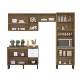 A cozinha modular FIRENZE FI0002 é formada por um aéreo de geladeira 70cm porta basculante com pistão a gás, um aéreo 3 portas 120cm com prateleiras internas, um paneleiro 4 portas com 2 portas de vidro fume, um balcão 120cm com 3 portas e 2 gavetas com tampo que pode ser substituído por pia. Seus pés são de polipropileno reguláveis se adequando as condições do chão, puxadores com design moderno, corrediças e dobradiças metálicas. Estruturado em MDP com revestimento ultravioleta.