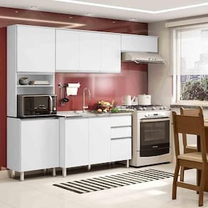 A Cozinha Compacta 9 Portas 2 Gavetas com balcão 1,20m para pia Paris da Poliman Móveis é ideal para quem deseja elegância e praticidade na cozinha, produto com altura diferenciada e profundidade ideal. Composta por paneleiro duplo com portas de bater e prateleiras, nicho organizador decorativo e espaço para micro-ondas, além de contar com um amplo armário aéreo triplo e armário aéreo 1 porta basculante com pistão a gás para melhor aproveitamento de espaço que pode ser sobre geladeira ou fogão.