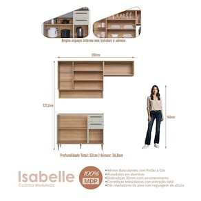 Cozinha Isabelle possui surpreendente espaço interno, design e cores sofisticadas que combinam perfeitamente com qualquer decoração. As gavetas possuem corrediças telescópicas, as portas basculantes contam com dobradiças com amortecimento e pistão à gás para o fechamento suave. Possui prateleiras internas. Com puxadores em alumínio com ponteira ABS e pés modernos com regulagem de altura. Esses itens de qualidade superior conferem durabilidade e maior vida útil ao móvel. Composta de chapa MDP 15cm e 25cm. Acabamento da Prateleira: Finish Foil Escala de Brilho da Prateleira: Fosco Acabamento da Gaveta: Finish Foil Escala de Brilho da Gaveta: Fosco Material do Puxador da Gaveta: Alumínio Acabamento da Porta: Finish Foil Escala de Brilho da Porta: Fosco Material do Puxador da Porta: Alumínio Acabamento dos Pés: Polipropileno Acompanha Rodapé Decorativo: Não Acompanha Tampo: Não Altura dos Pés: 17 cm Altura Máxima dos Pés: 17.0000 Ambiente Principal: Cozinha Balcão Suporta Pia: Sim codigo_ean: 7900288281722 Complexidade da Montagem: Alta: deve ser montado por um montador especializado Cor: Freijó / Arenas Cor do Produto: Freijó / Arenas Cor Flex: Não Cor Interna: Freijó Escala de Brilho: Fosco Espessura do Material da Estrutura: 15 mm Gaveta com Chave: Não Informações Complementares: Cada módulo Itens Inclusos: 1 Cozinha Compacta, Manual de Montagem e Kit Ferragens Linha ou Coleção: Isabelle Manual de Montagem e Instalação: https://product-hub-prd.madeiramadeira.com.br/962665913/documents/6798d235-ab12-4730-826b-df57296ad8c53306699498917619171311619.pdf Marca: Delmarco Móveis Material da Corrediça: Alumínio Material da Dobradiça/Corrediça da Porta: Alumínio Material da Gaveta: MDP Material da Porta: MDP Material da Prateleira: MDP Material do Fundo: MDF Material dos Pés: Polipropileno Medida de cada item (A x L x P): IS1630 – Aéreo – 75,5x119,9x36,8cm IS1500 – Balcão – 95x119,8x52cm IS1650 – Nicho – 22,5x119,8x15,5cm IS1611 – Aéreo – 37,7x79,9x36,8cm modular: Sim Montagem Flex: Não Necessita Montagem: Sim O Balcão Acompanha Pia: Não Origem do Produto: Nacional Pés Reguláveis: Sim Peso: 86,81 kg Peso Máximo por Gaveta: 5 kg Peso Máximo por Prateleira: 5 kg Possui Pés: 05 Possui Portas: Sim Possui Prateleiras: Sim Possui recorte para Cooktop: Não Possui Rodízio: Não Possui Vidro: Sim Produto Montado: Sim Recomendações de Uso, Manutenção e Limpeza: Limpar com um pano levemente úmido ou seco, não utilizar produtos químicos Sapatas Niveladoras: Não Sistema de Montagem: Parafusos, cavilhas e minifix Suporta Até (kg): 25 kg Tamanho Indicado da Pia: 1.20m Tamanho Indicado do Tampo: 1,20m Tamanho Indicado do Tampo ou Pia: 1.20m Tipo de Corrediça da Gaveta: Metálica Telescópica Tipo de Dobradiça da Porta: Soft close Tipo de Puxador da Gaveta: Externo Tipo de Puxador da Porta: Externo