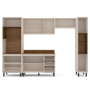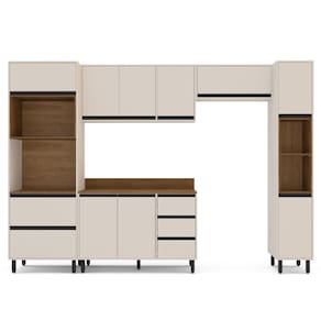 Características: Estrutura MDP Pintura UV 07 Portas com dobradiças metálicas 03 Portas com pistão à gás 04 Gavetas com corrediças telescópicas 04 Nichos para eletroportáteis Puxadores de Plástico Prateleiras com amplo espaço 13 pés em plástico Peso suportado nas Prateleiras Estruturais: 10kg Peso suportado nas Prateleiras: 5kg Peso suportado nas Gavetas: 3kg *Acompanha Tampo*