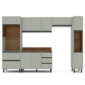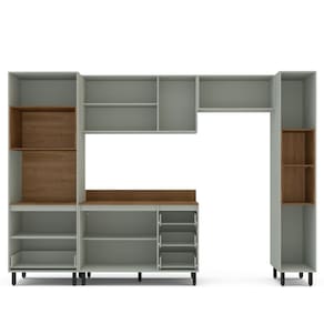 Características: Estrutura MDP Pintura UV 07 Portas com dobradiças metálicas 03 Portas com pistão à gás 04 Gavetas com corrediças telescópicas 04 Nichos para eletroportáteis Puxadores de Plástico Prateleiras com amplo espaço 13 pés em plástico Peso suportado nas Prateleiras Estruturais: 10kg Peso suportado nas Prateleiras: 5kg Peso suportado nas Gavetas: 3kg *Acompanha Tampo*