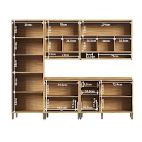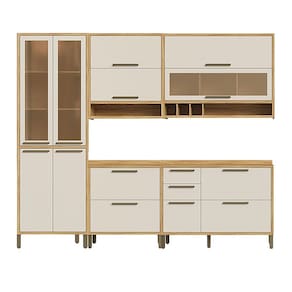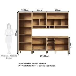Medida de cada item (A x L x P): Armário aéreo 80 - 90cm x 80cm x 33,50cm Armário aéreo 120 - 90cm x 120cm x 33,50cm Balcão 120 2P3G - 90cm x 120cm x 47cm Balcão 80 1P1G - 90cm x 80cm x 47cm Paneleiro 4P - 225cm x 74,50cm x 47cm