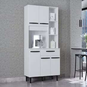 Qualidade e Durabilidade em Cada Detalhe: Fabricada com materiais selecionados, a Cozinha Malu garante resistencia e uma longa vida util: Estrutura Robusta: Produzida em MDP de 12 mm, um material reconhecido pela sua leveza e resistencia, ideal para moveis de uso diario. Amplo Armazenamento: Conta com 5 Portas equipadas com dobradicas metalicas, garantindo um fechamento suave e maior durabilidade. Gaveta Pratica: Possui 01 Gaveta com corredica metalica, deslizando com facilidade para voce guardar talheres e pequenos objetos. Acabamento Superior: O acabamento e realizado com Pintura (Ultra Violeta), que nao so proporciona um visual mais bonito e brilhante, como tambem oferece maior resistencia contra arranhoes e a umidade do dia a dia. Detalhes Modernos: Inclui Puxadores de Plastico e Pes de Plastico que complementam o design e facilitam a limpeza sob o movel.