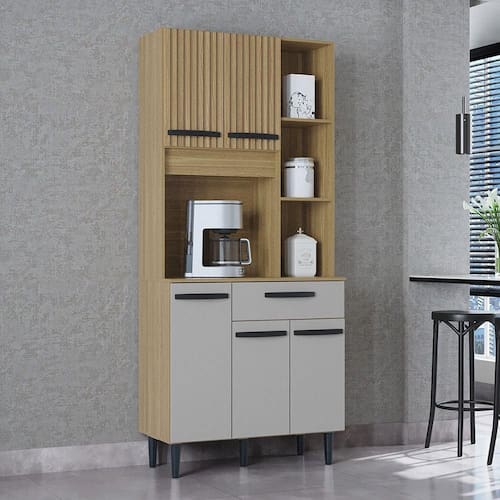 Qualidade e Durabilidade em Cada Detalhe: Fabricada com materiais selecionados, a Cozinha Malu garante resistencia e uma longa vida util: Estrutura Robusta: Produzida em MDP de 12 mm, um material reconhecido pela sua leveza e resistencia, ideal para moveis de uso diario. Amplo Armazenamento: Conta com 5 Portas equipadas com dobradicas metalicas, garantindo um fechamento suave e maior durabilidade. Gaveta Pratica: Possui 01 Gaveta com corredica metalica, deslizando com facilidade para voce guardar talheres e pequenos objetos. Acabamento Superior: O acabamento e realizado com Pintura (Ultra Violeta), que nao so proporciona um visual mais bonito e brilhante, como tambem oferece maior resistencia contra arranhoes e a umidade do dia a dia. Detalhes Modernos: Inclui Puxadores de Plastico e Pes de Plastico que complementam o design e facilitam a limpeza sob o movel.